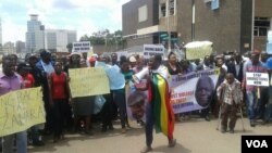 Amakhulu abantu beZimbabwe, abaphume ngobunengi, ukuyafola ezitaladeni zeHarare ukunanza umnyaka selokhu uItayi Dzamara, intathelizindaba elwela ilungelo loluntu, wanyamalalayo nyakenye ngemva kokuthunjwa ngabacatshangelwa ukuthi ngabezomvikela, bohlangothi lwabasebenza nsita.