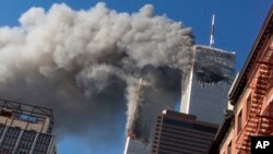 Amalwecatsha eAl-Qaeda atshayela indizamtshina ezimbalwa zabhidliza izakhiwo ezilohlonzi iWorld Trade Center njalo eyinye indazamtshina yaphoselwa esigodlweni sebutho ePentagon duzane leWashington DC.